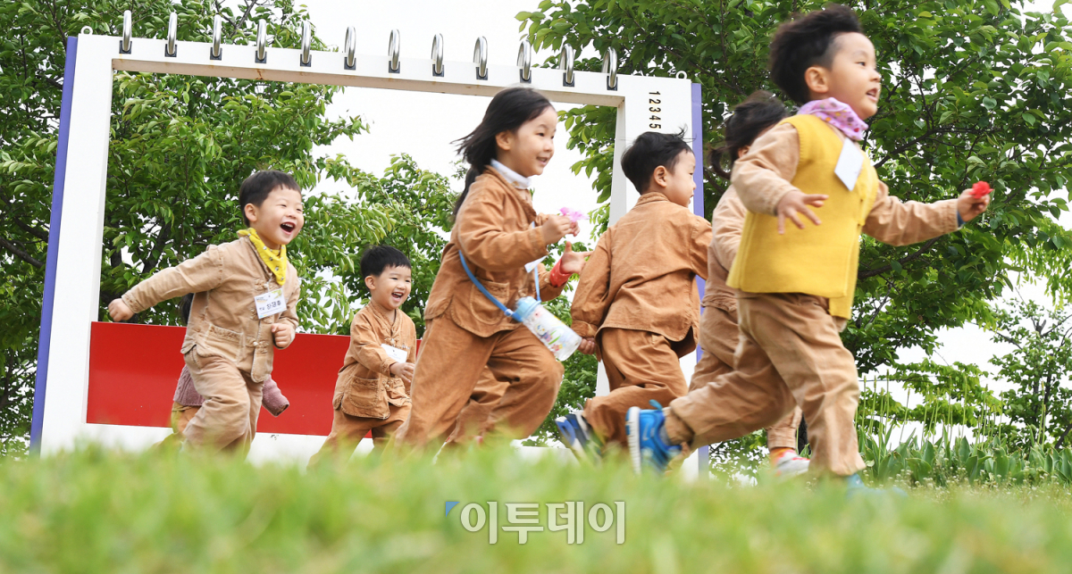 어린이들의 꿈이 우리나라의 희망차고 밝은 미래다. 어린이들이 꿈을 잃지 않도록 지켜주는 것이 어른의 책무다. 어린이날을 이틀 앞둔 3일 경기도 구리시 토평동 구리한강시민공원에서 남양주 한옥어린이집 어린이들이 해맑게 뛰놀고 있다. 오승현 기자 story@