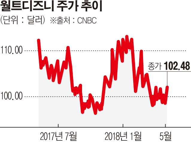 전날 뉴욕증시 다우지수는 5거래일 만에 반등했다. 미중 무역 갈등을 둘러싼 경계심은 여전했지만 저가 매수세가 유입되면서 모처럼 살아났다. 그럼에도 디즈니 주가는 0.8% 떨어져 시장과 동떨어진 움직임을 보였다.