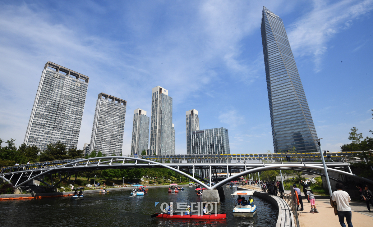 사흘간의 황금연휴에 전국 곳곳에서 열린 다채로운 행사와 축제장, 관광명소 등이 상춘객들로 붐볐다. 연휴 마지막 날인 7일 하늘과 고층건물이 한데 어우러진 인천시 연수구 송도 센트럴파크에서 가족단위의 나들이객들이 카누와 수상보트를 타며 막바지 휴일을 즐기고 있다. 오승현 기자 story@