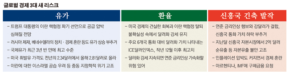 글로벌 경제가 미국과 중국의 무역전쟁 전운에 이어 새로운 불확실성에 직면했다. 유가 상승과 외환시장의 불안한 동태, 신흥국 긴축 발작 등이 세계 경제회복에 악영향 미칠 것이라는 우려가 고조되고 있다.