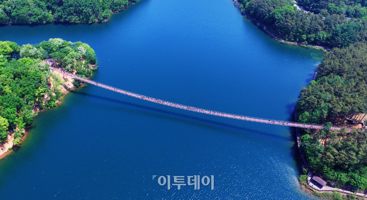 빼어난 자연 경관을 감상하며 스릴까지 만끽할 수 있는 ‘출렁다리’의 인기가 치솟고 있다. 길이 220m, 폭 1.5m으로 국내 최장 보도용 현수교인 경기도 파주시 마장호수 출렁다리에서 10일 관광객들이 파란 하늘과 호수를 배경으로 추억을 만들고 있다. 테마체험 공간으로 조성된 마장호수 일원은 호수 경관이 한눈에 보이는 전망대와 조망 덱 2곳, 3.3km 구간의 산책로 등이 마련돼 있다. 오승현 기자 story@