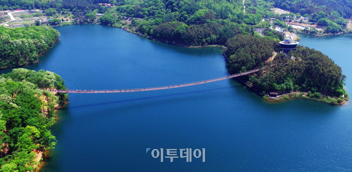 빼어난 자연 경관을 감상하며 스릴까지 만끽할 수 있는 ‘출렁다리’의 인기가 치솟고 있다. 길이 220m, 폭 1.5m으로 국내 최장 보도용 현수교인 경기도 파주시 마장호수 출렁다리에서 10일 관광객들이 파란 하늘과 호수를 배경으로 추억을 만들고 있다. 테마체험 공간으로 조성된 마장호수 일원은 호수 경관이 한눈에 보이는 전망대와 조망 덱 2곳, 3.3km 구간의 산책로 등이 마련돼 있다. 오승현 기자 story@