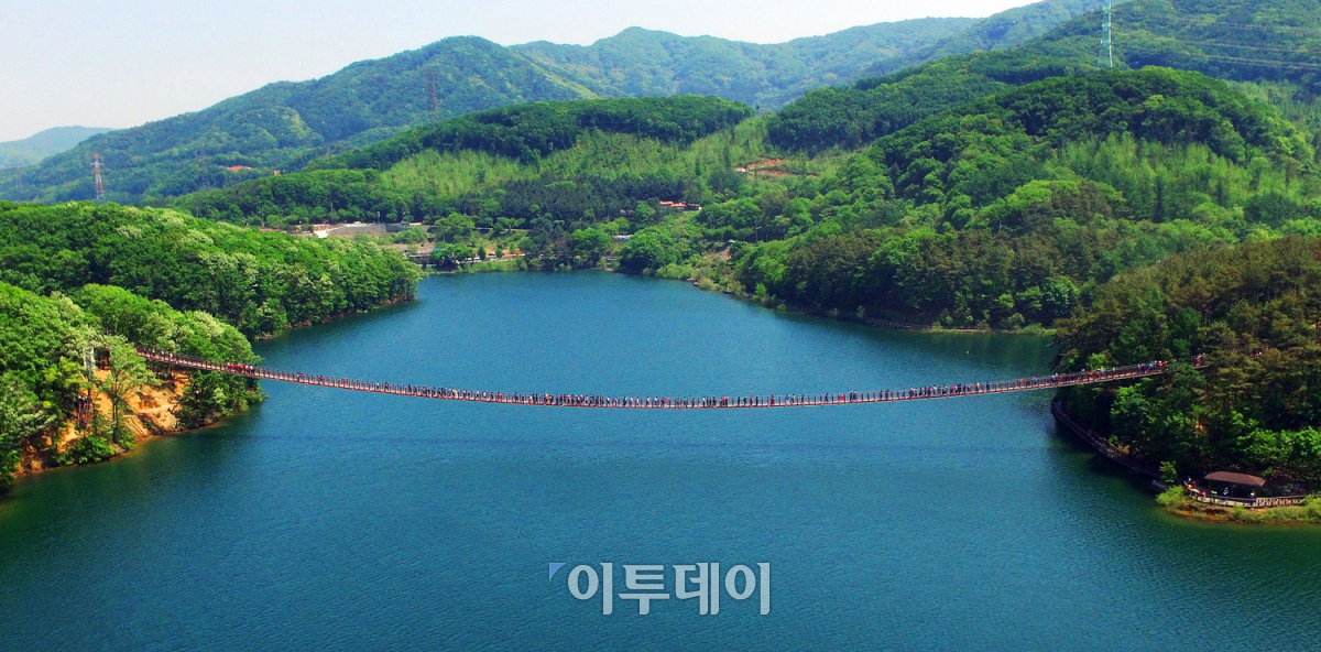 빼어난 자연 경관을 감상하며 스릴까지 만끽할 수 있는 ‘출렁다리’의 인기가 치솟고 있다. 길이 220m, 폭 1.5m으로 국내 최장 보도용 현수교인 경기도 파주시 마장호수 출렁다리에서 10일 관광객들이 파란 하늘과 호수를 배경으로 추억을 만들고 있다. 테마체험 공간으로 조성된 마장호수 일원은 호수 경관이 한눈에 보이는 전망대와 조망 덱 2곳, 3.3km 구간의 산책로 등이 마련돼 있다. 오승현 기자 story@