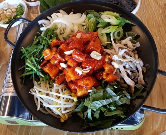 장어와 각종 야채, 김치가 어우러져 밥도둑이 따로 없을 정도로 특유의 맛을 자아낸다.