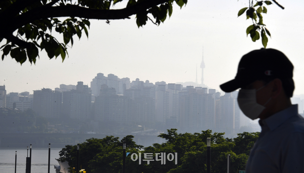 한반도가 황사와 미세먼지로 뒤덮였다. 전국 곳곳의 미세먼지 농도가 '나쁨' 수준을 보인 25일 오전 서울 영등포구 여의도 한강공원에서 바라본 서울 도심의 시계가 매우 탁하다. 기상청은 황사의 영향과 대기 정체로 국내·외 오염물질이 축적돼 대기 질이 혼탁할 것으로 내다보고, 마스크 착용 및 외출자제 등 건강관리를 당부했다. 오승현 기자 story@