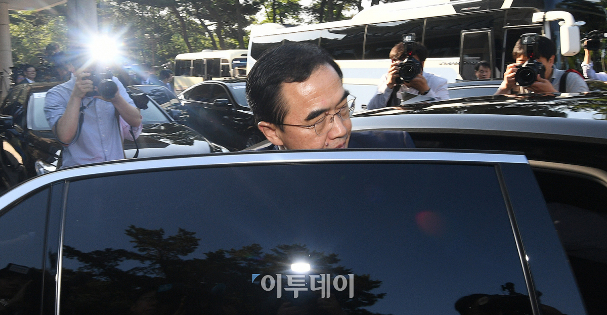 부'판문점 선언' 채택 후 한 달여 만에 남북 고위급 인사들이 만난다. '남북고위급회담'이 개최된 1일 오전 조명균 통일부장관을 비롯한 우리 측 대표단이 서울 종로구 남북회담본부를 나서 판문점으로 출발하고 있다. 남북은 이번 회담에서 철도연결을 비롯한 경제협력, 이산가족상봉 등 '판문점 선언'에 담긴 사항을 두루 논의할 것으로 보인다. 한편, 지난달 16일 열릴 예정이었던 회담은 북한의 일방적인 연기 통보로 무산된 바 있다. 오승현 기자 story@