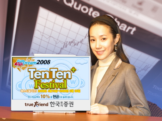 '2008 Ten Ten+ 페스티벌' 이벤트는 한국투자증권 온라인 펀드 쇼핑몰인 금융상품백화점을 통해 적립식펀드를 가입하는 고객을 대상으로 가입금액의 10%를 현금으로 돌려주는 캐쉬백 행사이다.