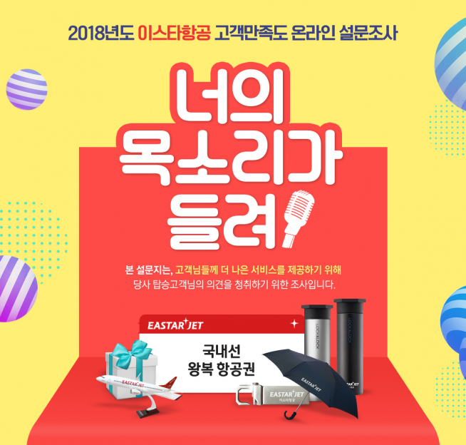 지난해 창립 10주년을 맞이해 고객 만족도 설문조사를 실시했던 이스타항공은 올해도 고객들의 다양한 의견을 수렴해 서비스 개선 노력을 지속적으로 이어갈 예정이다.