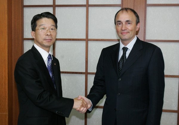 왼쪽부터 왼쪽부터 최홍식 증권선물거래소 기획담당 본부장보, 서지 해리(Serge Harry) BlueNext이사장.
