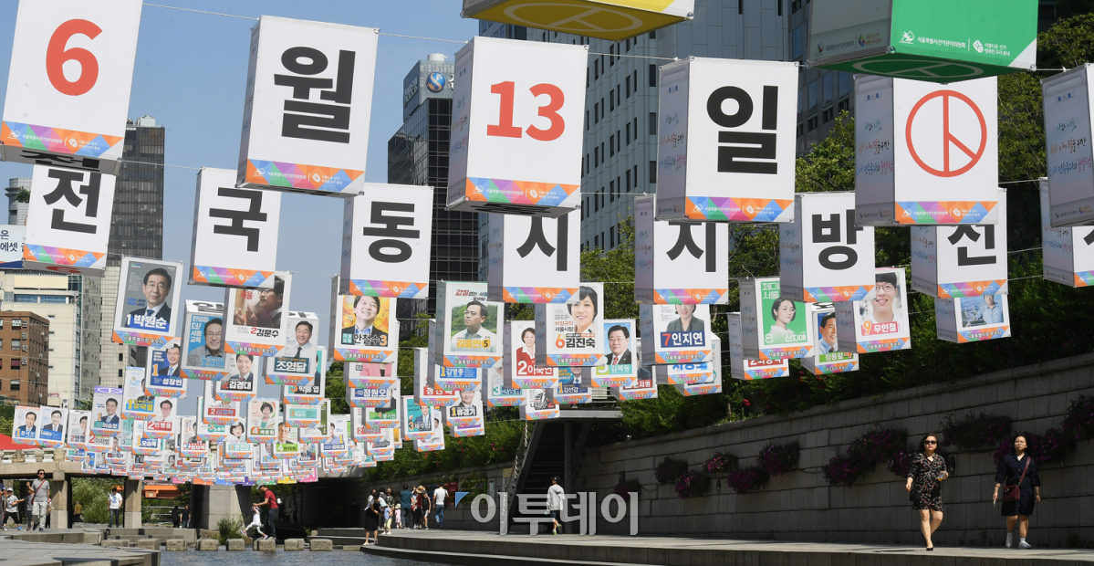 '제7회 전국동시지방선거' 및 '국회의원 재·보궐선거'를 열흘 앞둔 3일 서울 청계천 모전교부터 광통교 구간에 설치된 '6·13 아름다운 지방선거 조형물'이 유권자들의 눈길을 끌며 소중한 권리 행사를 독려하고 있다. 서울시선거관리위원회가 투표 독려를 위해 설치한 이 조형물은 100여 명의 서울시장·교육감·구청장 후보의 선거 벽보 등으로 제작됐다. 오승현 기자 story@
