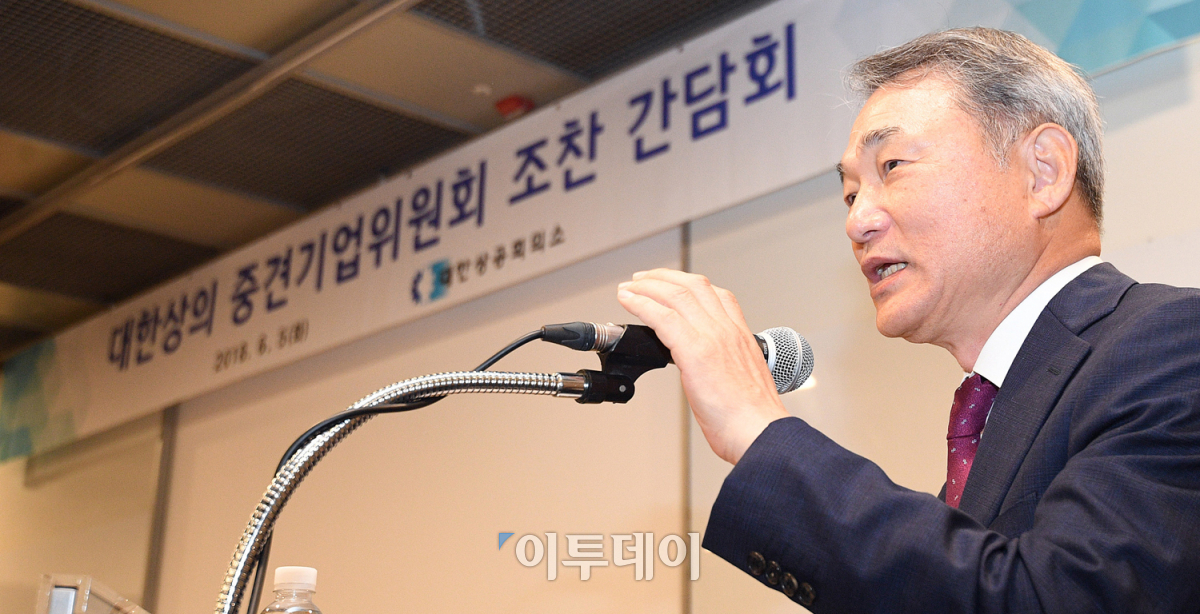 이종태 대한상의 중견기업위원회 신임 회장이 5일 오전 서울 중구 상의회관 중회의실A에서 열린 '대한상의 중견기업위원회 조찬 간담회'에서 취임 인사를 하고 있다. 오승현 기자 story@