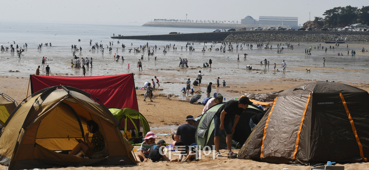 서울의 한낮 기온이 30℃를 웃도는 등 무더운 날씨를 보인 6일 인천시 중구 을왕리해수욕장이 휴일을 맞아 더위를 피해 바다를 찾은 피서객들로 인산인해를 이루고 있다. 오승현 기자 story@