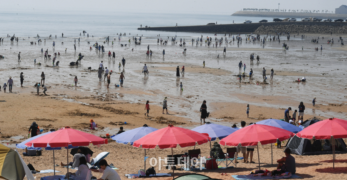 서울의 한낮 기온이 30℃를 웃도는 등 무더운 날씨를 보인 6일 인천시 중구 을왕리해수욕장이 휴일을 맞아 더위를 피해 바다를 찾은 피서객들로 인산인해를 이루고 있다. 오승현 기자 story@