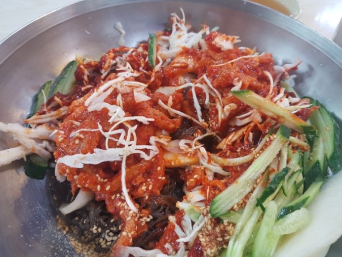 '고향냉면'에서는 회냉면이 인기다. 이곳 역시 인천 화평동 세숫대야 냉면 거리에 위치한 가게 답게 회냉면이 커다란 세숫대야 같은 그릇에 담겨 푸짐한 양을 자랑한다.