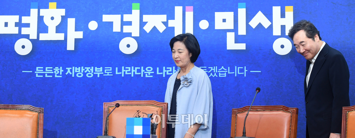 남북·북미 정상회담 후속조치 및 경제·노동 현안 등을 협의하기 위해 정부와 여당, 청와대가 한자리에 모여 머리를 맞댔다. 이낙연 국무총리와 추미애 더불어민주당 대표가 20일 오전 서울 여의도 국회에서 열린 '고위 당·정·청 협의회'를 하기 위해 회의실로 입장하고 있다. 오승현 기자 story@