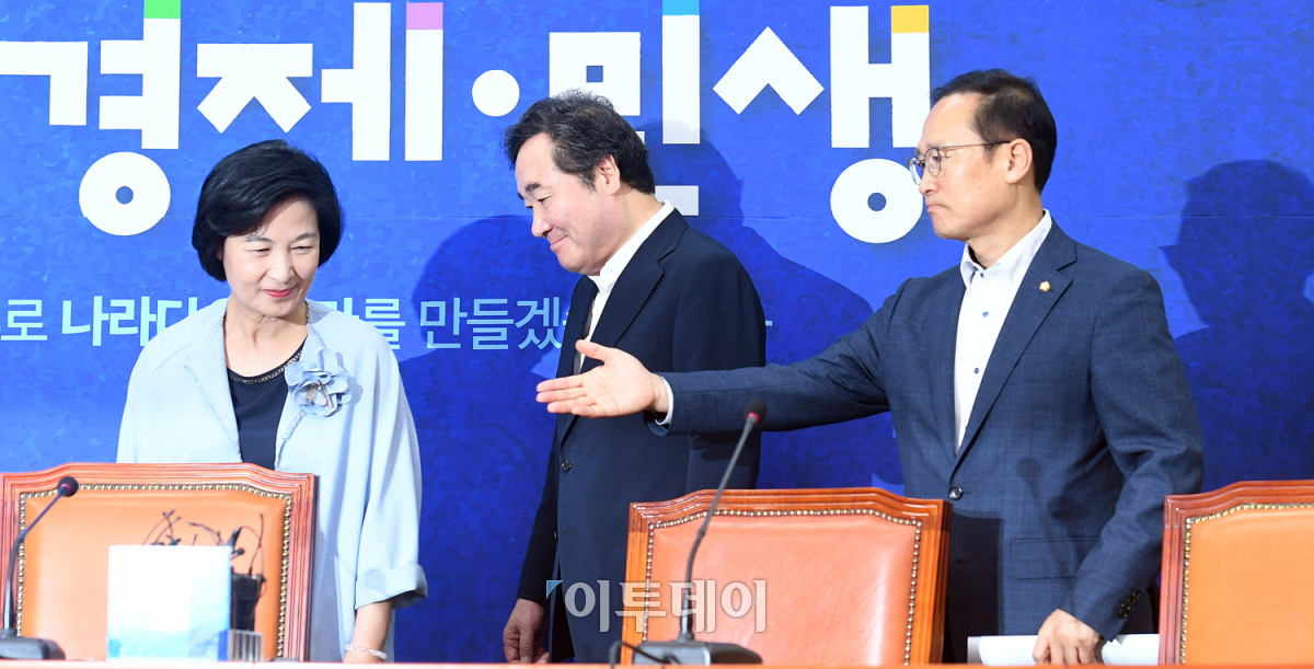 남북·북미 정상회담 후속조치 및 경제·노동 현안 등을 협의하기 위해 정부와 여당, 청와대가 한자리에 모여 머리를 맞댔다. 이낙연 국무총리와 추미애 더불어민주당 대표, 홍영표 원내대표가 20일 오전 서울 여의도 국회에서 열린 '고위 당·정·청 협의회'를 하기 위해 회의실로 입장하고 있다. 오승현 기자 story@