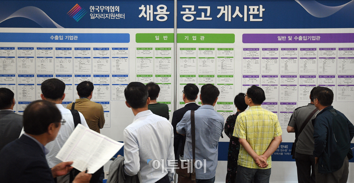 한국무역협회가 중견 인력 취업 지원에 발 벗고 나섰다. '2018 중장년 전문인력 채용박람회'가 열린 20일 서울 강남구 코엑스에서 구직자들이 자신에 맞는 일자리를 찾고 있다. 수출기업 24개사를 포함한 총 50개 기업이 참가한 이번 박람회는 해외 마케팅, 법인장, IT 등 다양한 분야에서 중견인력을 채용했다. 오승현 기자 story@