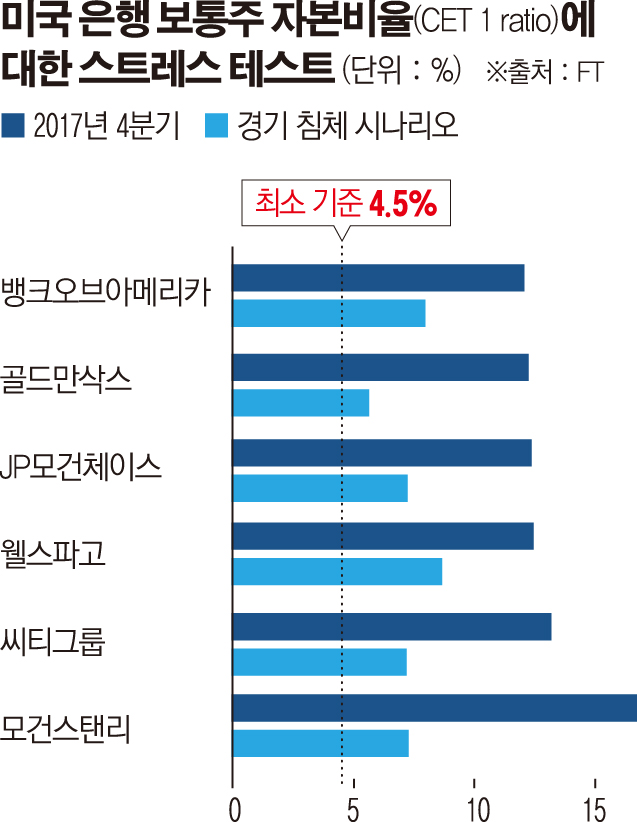 경제와 시장이 최악의 상황에 빠졌을 것으로 가정한 스트레스 테스트에서 은행들은 5780억 달러(약 643조250억 원)의 손실을 기록하면서도 정부의 구제조치 없이 위기에서 벗어날 것으로 예상됐다. 다만 몇몇 은행은 일부 자본 요구 사항을 위반하는 것으로 나타났다.