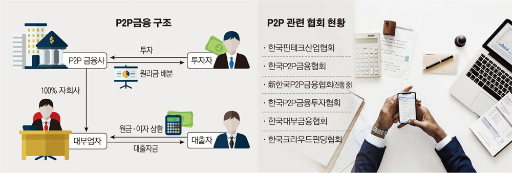 ◇P2P협회 내부 잡음 심각… "업권 대표성 판단할 근거 없다" = 특히 한국 P2P금융협회가 내부 잡음에 이어 협회장과 일부 회원사들이 이해관계를 좁히지 못하고 탈퇴, 업권의 대표성을 인정받기 더욱 어려워졌다는 평가가 나온다. 신현욱 전 한국 P2P금융협회장은 5월 선출된 지 3달 만에 ‘일신상의 이유’로 돌연 사퇴했다. 이후로 렌딧, 8센트, 팝펀딩 등 주요 P2P 업체도 연이어 협회를 이탈했다. 이들은 새로운 협회를 만들 준비를 하고 있는 상황이다.