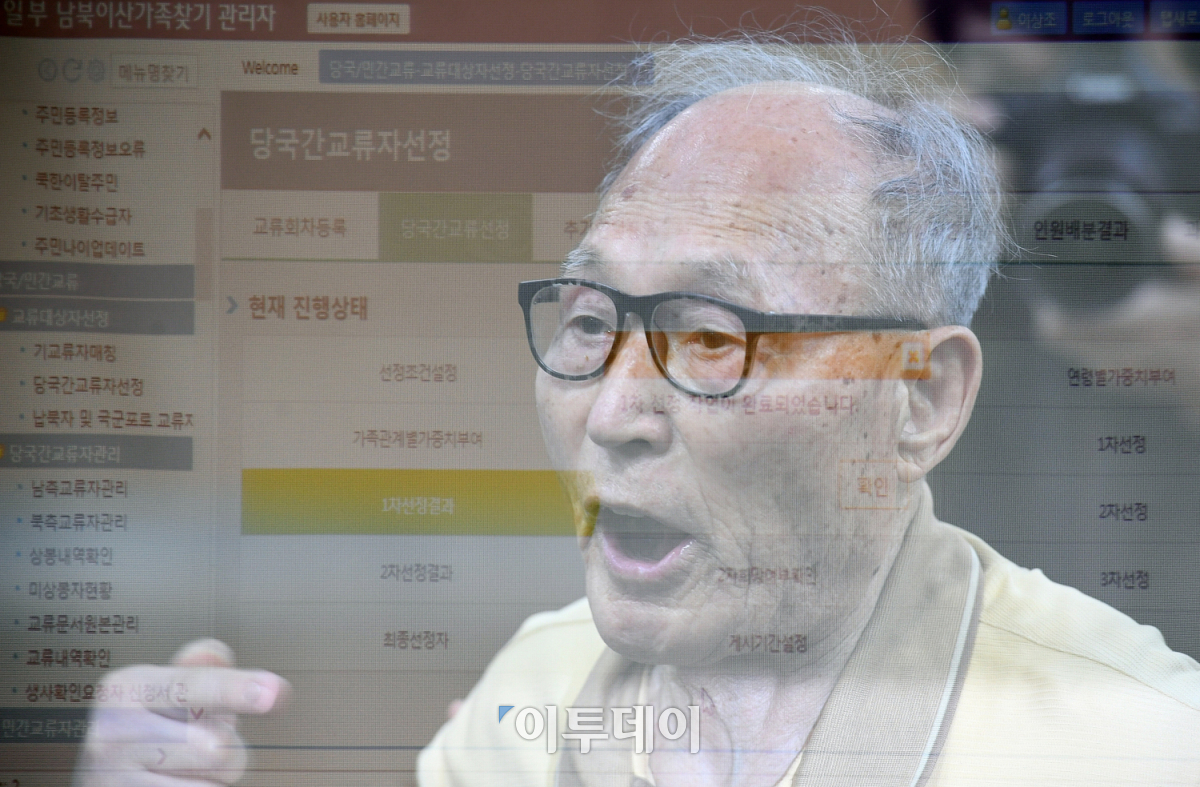 남북적십자회담에서 합의된 8·15를 계기 이산가족 상봉 행사의 상봉 예비 후보자 500명이 선정됐다. 상봉 예비 후보자 무작위 컴퓨터 추첨이 실시된 25일 서울 중구 대한적십자사 서울사무소를 직접 찾은 평안북도 철산 출신의 박성은(95) 옹이 초조하게 추첨 결과를 기다리고 있다. 이날 적십자사는 인선위원회에서 상봉 후보자 선정 기준을 결정해 무작위 컴퓨터 추첨에 적용했다. 다중노출 촬영. 오승현 기자 story@