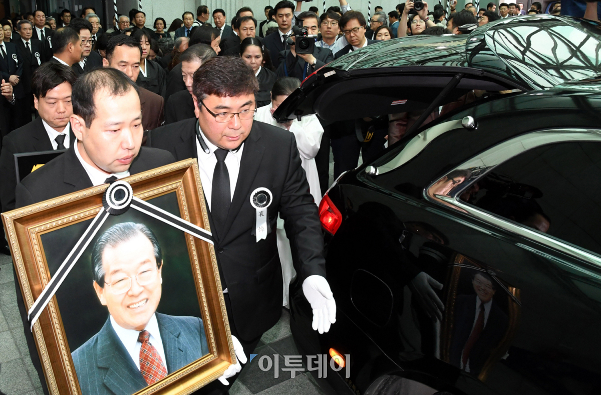 김종필 전 국무총리의 영결식이 엄수된 27일 오전 서울 송파구 서울아산병원에서 고인의 영정과 상여가 장지를 향해 운구되고 있다. 사진공동취재단