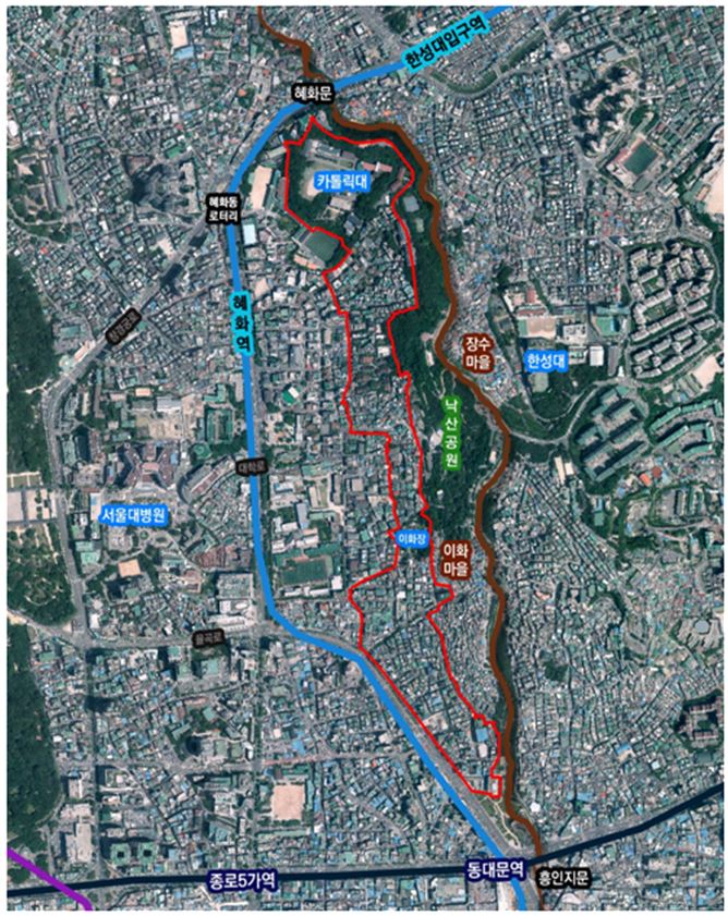 서울시는 27일 제9차 도시·건축공동위원회에서 종로구 이화동 일대 23만6670㎡에 대한 ‘한양도성 및 낙산공원 주변 및 구릉주거지 특성을 고려한 도심관리방안’을 ‘수정가결’ 했다고 28일 밝혔다.