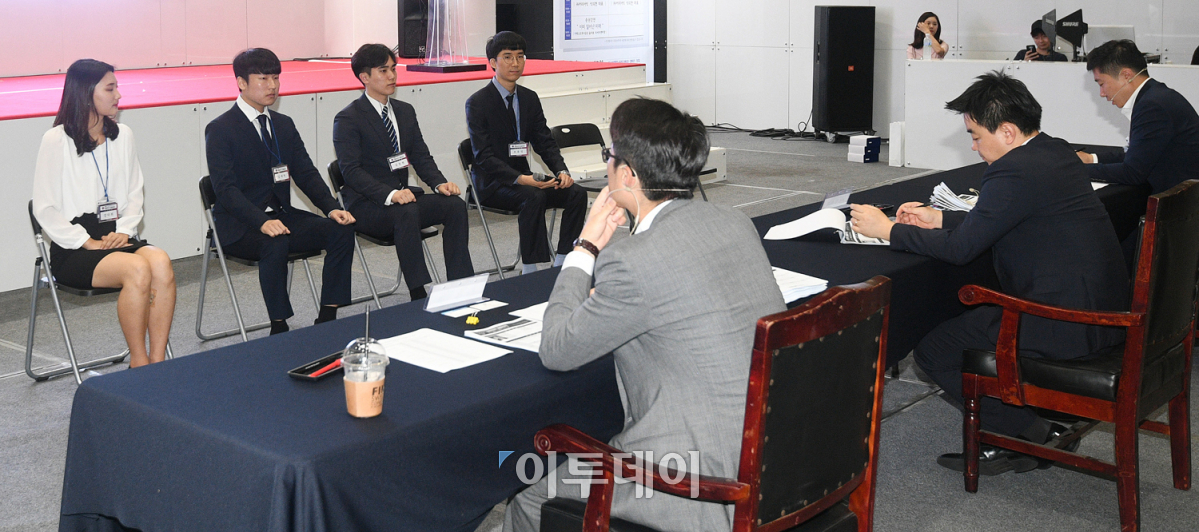 다양한 금융정보와 빠르게 발전하고 있는 디지털금융을 체험할 수 있는 '제5회 대한민국 금융대전'이 28일 서울 강남구 삼성동 코엑스에서 개막했다. 행사 첫날 참가자들이 은행권 인사담당자들로 구성된 면접관들에게 모의면접을 보고 있다. 프리미엄 경제신문 이투데이 주최로 열린 이번 행사는 '4차 산업혁명 시대의 재테크, 핀테크, 창업'을 주제로 오는 29일까지 계속된다. 오승현 기자 story@
