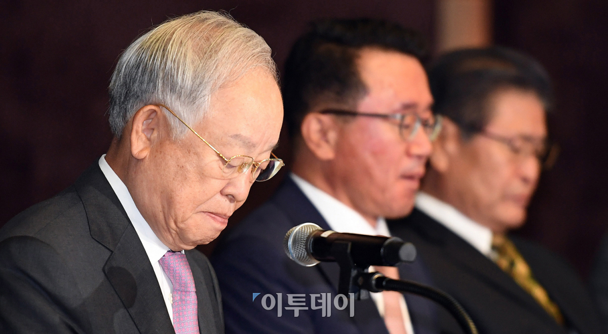 최근 거취 논란과 비자금 조성 의혹으로 내홍을 겪던 한국경영자총협회(이하 경총)가 논란의 중심이었던 송영중 상임부회장을 해임했다. 손경식 경총 회장이 3일 오전 서울 중구 웨스틴조선호텔에서 열린 '경총 임시총회'에서 생각에 잠겨있다. 오승현 기자 story@