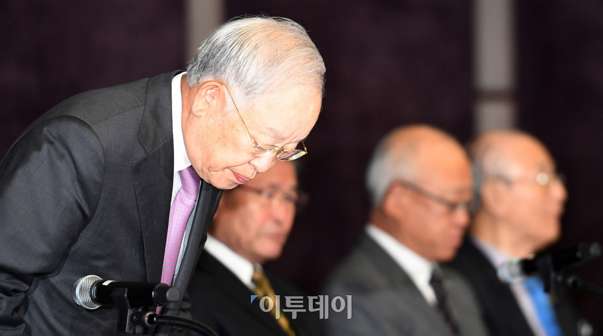 최근 거취 논란과 비자금 조성 의혹으로 내홍을 겪던 한국경영자총협회(이하 경총)가 논란의 중심이었던 송영중 상임부회장을 해임했다. 손경식 경총 회장이 3일 오전 서울 중구 웨스틴조선호텔에서 열린 '경총 임시총회'에 앞서 회원들에게 인사하고 있다. 오승현 기자 story@
