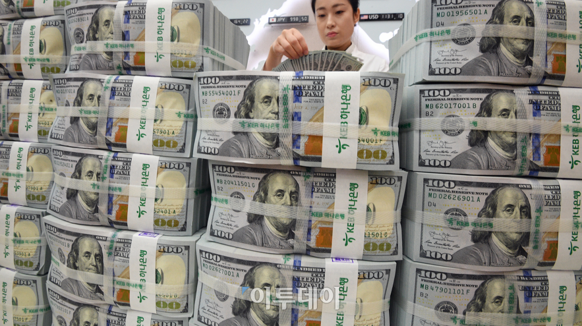 우리나라 외환보유액이 사상 최초로 4000억 달러를 돌파했다. 이는 지난 1998년 외환위기보다 100배, 2008년 글로벌 금융위기보다 2배 이상 늘어난 수치다. 사진은 한국은행이 '2018년 6월 말 외환보유액'을 발표한 4일 오전 서울 중구 KEB하나은행 명동점 위변조대응센터에서 관계자가 외화를 검수하는 모습. 오승현 기자 story@