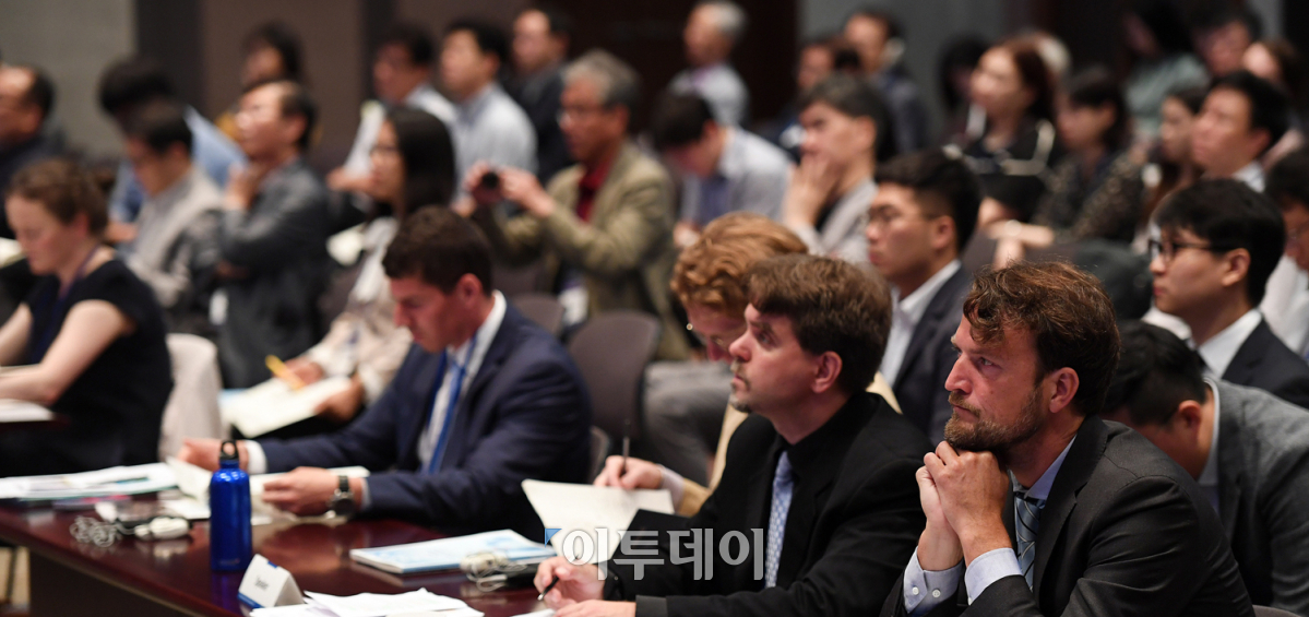 기후변화 적응에 관해 전 세계 전문가가 모여 국내외 최신 정보를 공유하고, 정책 방향을 논의하는 국제회의가 열렸다. '제10회 기후변화 적응 국제 심포지엄'이 열린 10일 오전 서울 중구 한국프레스센터에서 참석자들이 발표를 경청하고 있다. 심포지엄은 유엔기후변화협약과 유럽연합, 독일, 일본 등 국내외 전문가 200여 명이 참석해 기후변화 적응을 위한 거버넌스와 전문기관의 역할을 논의했다. 오승현 기자 story@