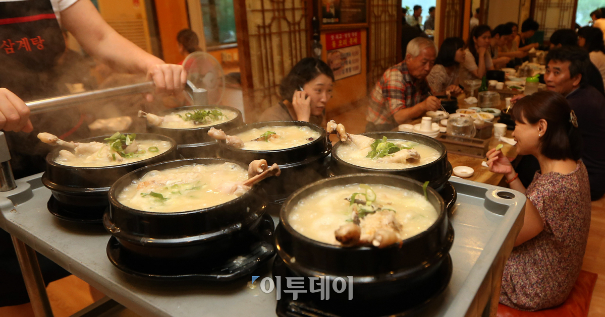 초복을 하루 앞둔 16일 서울의 한 삼계탕 전문점에서 시민들이 보양식을 먹으며 더위를 이겨내고 있다. 오승현 기자 story@