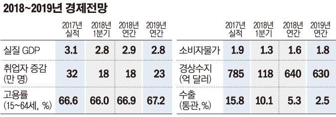 특히 올해 경제성장률 전망치를 지난해 전망했던 3.0%보다 0.1%포인트(P) 낮춘 2.9%로 잡았으며 각종 투자도 증가 폭이 크게 둔화할 것으로 예상, 우리 경제가 후퇴기에서 침체기로 접어들고 있다는 점이 크게 우려되고 있다.