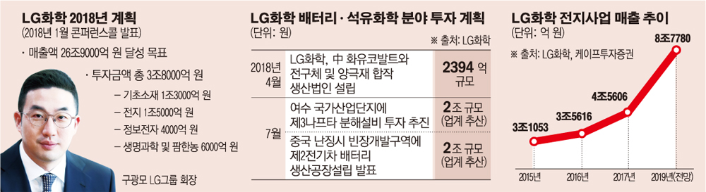 구광모 LG 회장의 첫 번째 투자처로 지목된 LG화학이 여수에 이어 중국에서 투자를 이어간다. LG 각 계열사의 신사업 포트폴리오가 구 회장 체제 들어 하나씩 발 빠르게 실현되고 있다.