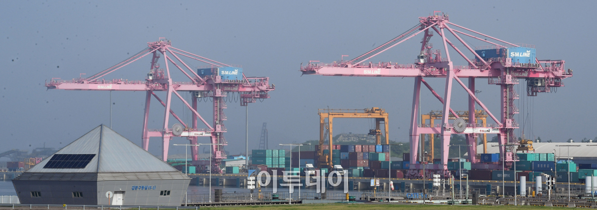 유럽연합(EU)이 철강 세이프가드(긴급수입제한조치)를 발동하며 우리나라 철강 산업도 타격을 받을 것으로 입을 것으로 보인다. 외교부에 따르면 EU의 세이프가드 대상으로 결정된 23개 철강제품에 대한 한국의 수출 규모는 29억 달러(한화 3조2천800억 원)에 달한다. 사진은 EU가 세이프가드 발효를 시작한 19일 오전 수출용 컨테이너가 쌓여 있는 인천 서구 경인항인천컨테이너부두의 모습. 오승현 기자 story@