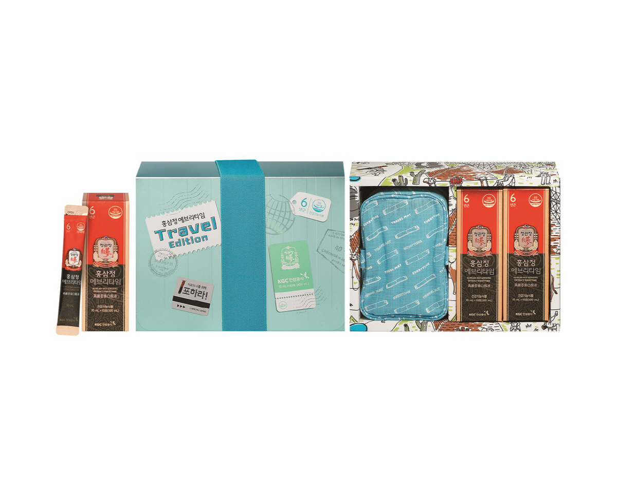 KGC인삼공사의 대표 제품은 100% 홍삼 농축액을 담은 ‘정관장 홍삼정’이다. 특히 여름철 여행객을 위한 한정판 ‘홍삼정 에브리타임 트래블 에디션’은 2016년부터 매년 다른 콘셉트와 구성으로 내놓아 소비자들의 관심을 끌고 있다. 지난해에는 출시 한 달여 만에 2만3000세트 이상이 판매되며 큰 인기를 끌었다. 올해 ‘홍삼정 에브리타임 트래블 에디션’은 ‘홍삼정 에브리타임’ 40포와 패브릭 소재로 가볍게 휴대해 활용할 수 있는 ‘트래블 매트’를 함께 구성했다. 이 제품은 전국 정관장 매장 및 주요 백화점 등에서 구매 가능하다.
