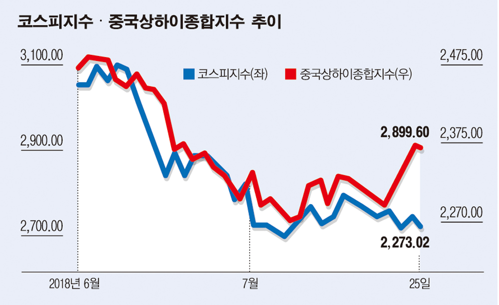 오찬수 현대차증권 연구원은 “6월부터 무역전쟁이 시작되면서 한국 시장의 하락이 시작됐는데, 이때부터 중국 증시와 커플링 현상이 시작됐다”며 “최근에는 두 지수가 상당히 비슷하게 움직이고 있는데 상관관계가 매우 크다고 할 수 있다”고 말했다.