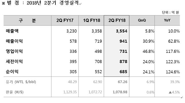 2분기 매출액은 전방산업 성수기 진입에 따른 판매량 증가 영향을 받아 전분기 대비 5.8% 증가했다.