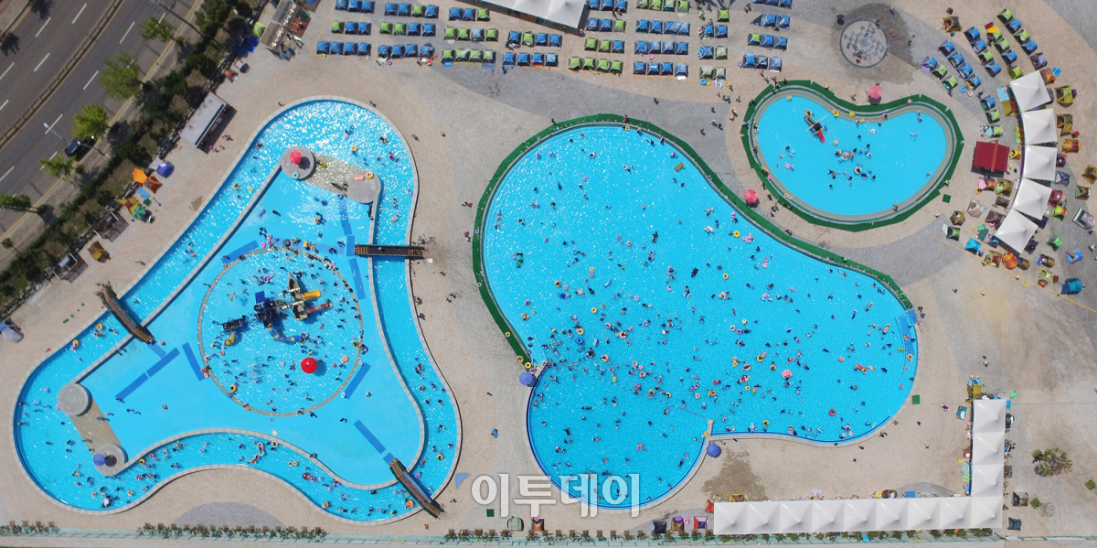 [포토] 안산 호수공원 야외수영장, 피서객으로 북적