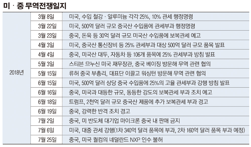 7월 6일 트럼프가 340억 달러 규모의 중국산 수입품에 25%의 관세를 부과하기로 한 이후 양국 간 회담은 중단됐고, 중국은 협상에서 약속했던 내용을 무효화할 것이라고 밝혔다. 물론 중국도 그에 상응하는 관세로 미국에 맞불을 놨다.