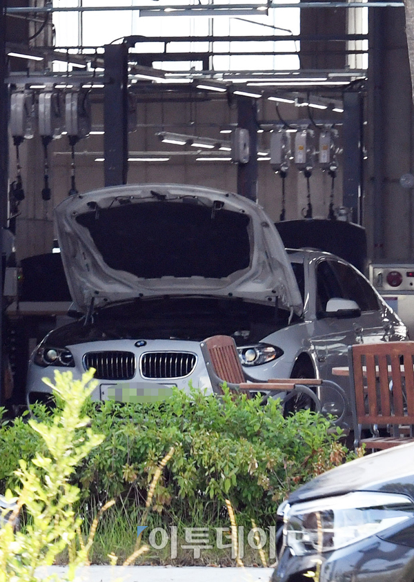 BMW 42개 차종 10만6317대의 리콜 조처가 내려진 뒤에도 주행 중인 BMW 승용차의 화재사고가 잇따르며 운전자들의 불안감이 커지고 있다. BMW의 긴급 안전진단이 진행 중인 1일 한 BMW 서비스센터에 안전점검을 받기 위한 차량과 기타 서비스 대상 차량들이 입고돼 있다. BMW는 안전진단을 마친 후 오는 20일부터 부품교체 리콜을 진행할 예정이다. 오승현 기자 story@