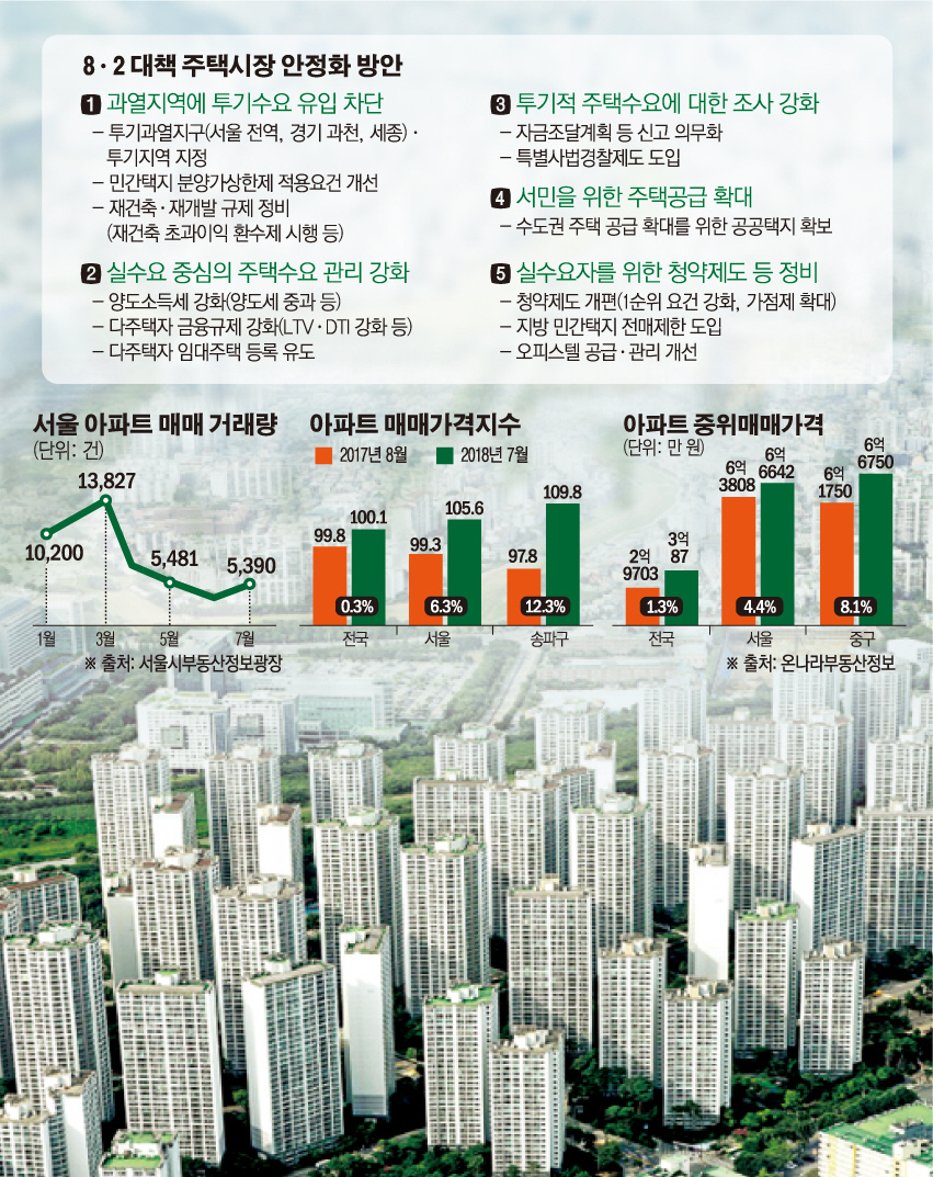 정부는 작년 8·2 대책을 통해 5가지 항목에 따른 16개 추진 과제를 기획했다. 정책의 의도대로 부동산 시장은 반응했을까. 사계절을 보낸 부동산 시장은 여전히 불안정하다. 집값은 오르고 멈추기를 반복하고, 거래 쏠림현상은 여전하다.