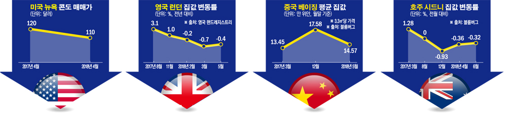 블룸버그통신은 1일(현지시간) 글로벌 부동산 붐이 종말을 맞았다고 분석했다. 특히 높은 인기와 그에 비례하는 부동산 가격을 자랑하던 영국 런던, 중국 베이징, 호주 시드니, 미국 뉴욕 맨해튼 등, 주요 도시의 주택 시장이 침체하면서 ‘부동산 시장 대붕괴’가 오는 것 아니냐는 우려가 커지고 있다. 통신은 각국 정부가 부동산 거품으로부터 경기를 연착륙시키기 위해 투기를 막고 세제를 개편하고 대출 기준을 강화하면서 가격이 내려가고 있다고 설명했다.