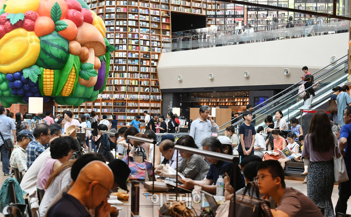 역대 최고 기온을 경신할 만큼 더운 2018년 여름, 시원하고 쾌적한 도서관이 도심 속 문화 피서지로 각광 받고 있다. 2일 서울 강남구 코엑스몰 스타필드 별마당도서관에서 더위를 피해 도서관을 찾은 시민들이 독서 삼매경에 빠져있다. 오승현 기자 story@
