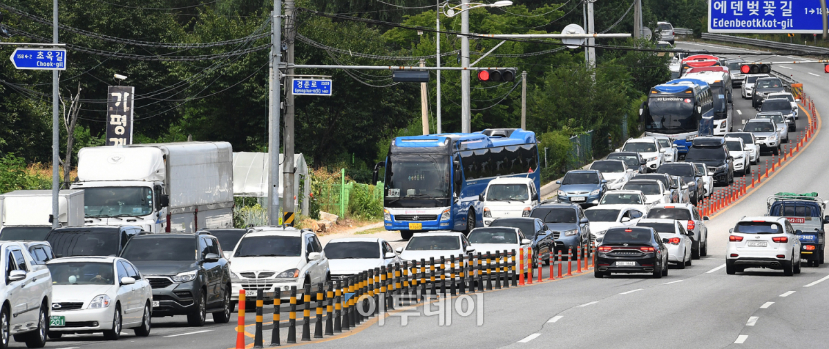 최악의 폭염이 절정에 이른 8월 첫째 주 휴일에 전국 유명 해수욕장과 계곡, 축제장 등이 피서객으로 인산인해를 이뤘다. 5일 경기도 가평군 도로가 피서를 마치고 돌아오는 차량으로 정체를 빚고 있다. 오승현 기자 story@