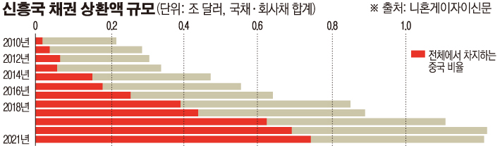 상환액 규모가 가장 큰 나라는 중국이다. 향후 3년간 1조7531억 달러로 이는 신흥국 전체의 54%에 해당하는 규모다. 이외에 브라질이 1360억 달러를, 러시아가 1330억 달러, 멕시코가 881억 달러를 갚아야 한다. 국제금융협회(IIF)에 따르면 기업과 정부 부분을 합친 신흥국의 부채는 6월 말 기준 57조 달러로 전 세계 부채의 약 30%를 차지한다.