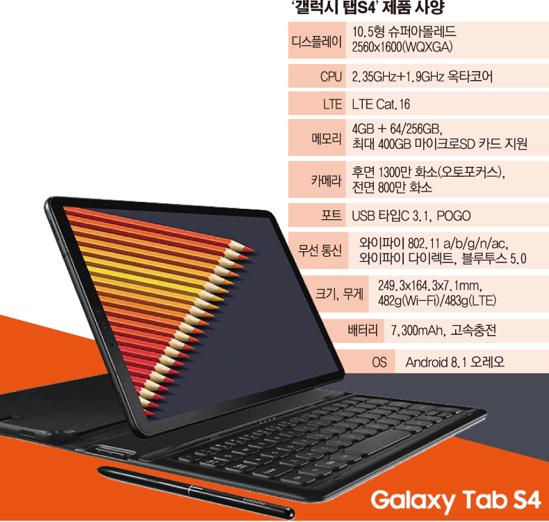 7일 관련 업계에 따르면 삼성전자는 프리미엄 태블릿 갤럭시 탭S4를 이달 중순 출시한다. 새로 선보일 갤럭시 탭S4의 가장 큰 특징은 태블릿 최초로 모바일 기기에서 데스크톱 PC 사용 경험을 제공하는 ‘삼성 덱스’를 지원한다는 점이다.