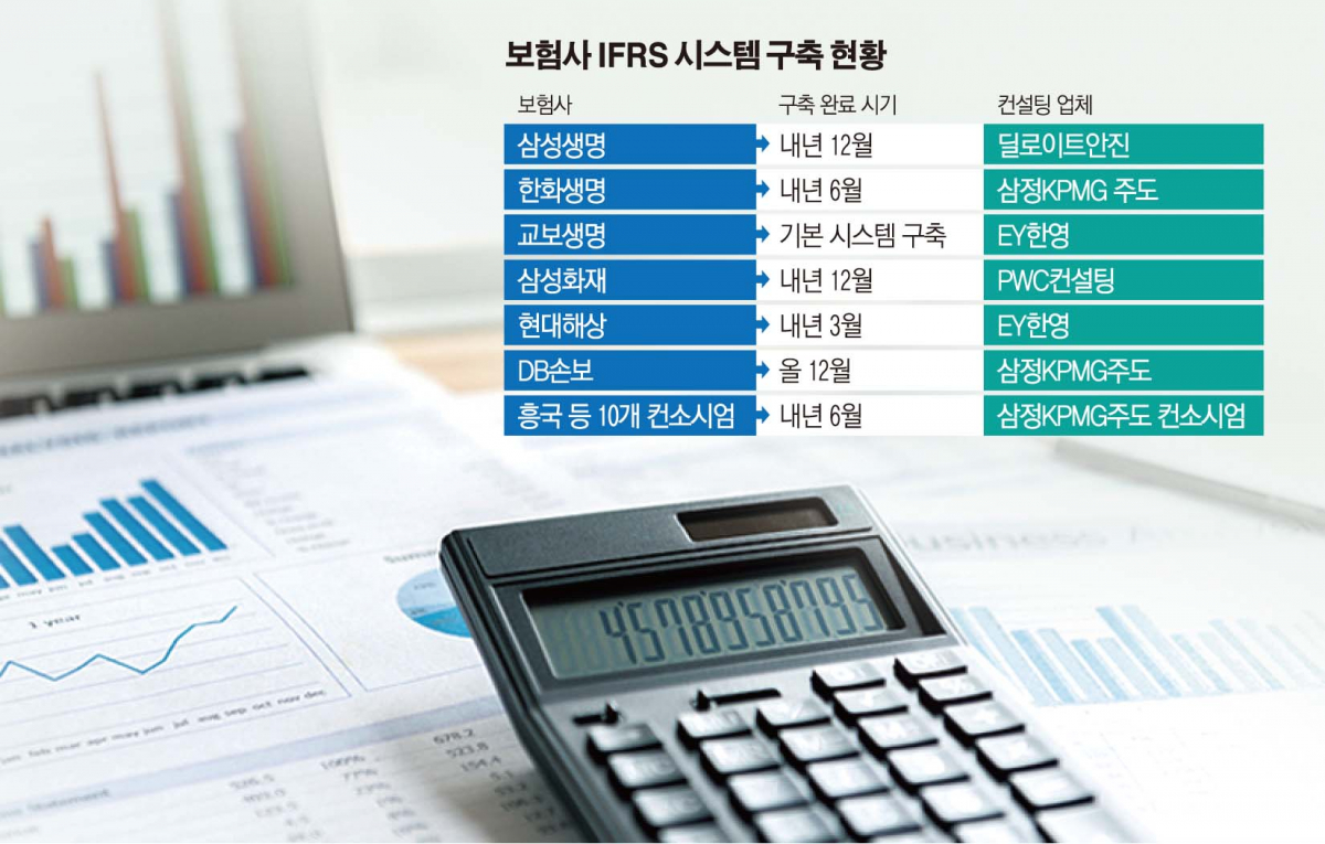 2021년 도입되는 IFRS 17은 보험 자산과 부채를 100% 시가평가하는 회계기준이다. 현행 회계제도가 근본적으로 바뀌는 만큼 당국은 보험사들에게 선제적 대응을 요구하고 있다. 현재 삼성·한화·NH농협·미래에셋 등 5대 생보사와 삼성·현대·DB·KB·메리츠 등 손보사 5곳은 각각 회계법인, 컨설팅 업체와 계약을 맺고 시스템 개발에 착수한 상태다. 또한 흥국·현대라이프·KDB·DB·DGB생명과 롯데·흥국·NH·더케이·MG손보 등 10여개 중소 보험사는 보험개발원과 컨소시엄을 구성해 시스템을 구축하고 있다.