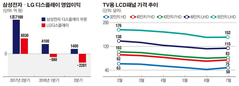 LCD 가격 하락은 한국 기업에 직격탄을 날렸다. LG디스플레이는 올 2분기 영업손실 2281억 원을 기록했다. 전분기(-980억 원)에 이어 연속으로 적자이다.