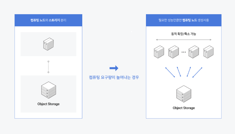 이번에 출시된 ‘클라우드 하둡’은 빅데이터를 쉽고 빠르게 처리할 수 있는 오픈소스 기반 분석 서비스다. 여러 컴퓨터를 하나로 묶어 대용량 데이터를 저장하고 정보를 분석할 수 있는 것이 장점이다. 뿐만 아니라 컴퓨팅 노드의 수를 원하는 만큼 쉽게 늘리고 축소할 수 있기 때문에 빅데이터 분석에 소요되는 시간과 인프라 비용을 절감할 수 있다.